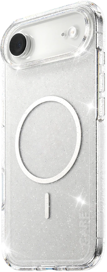 Eine unserer beliebtesten Hüllen. Eine auffällige Hülle für den roten Teppich und all die glitzernden Nächte, an die man sich gerne erinnert. Phänomenaler Schutz. 4,8 Meter Falltest in allen Winkeln und Ecken. Hergestellt aus recyceltem Plastik. Kabelloses Laden und MagSafe-kompatibel. Ohne Wenn und Aber: 1 Jahr Anti-Vergilbungs-Garantie. Entworfen, um zu beeindrucken. Diese wunderschöne, sternbeleuchtete Hülle lässt dich glänzen wie ein Diamant und bietet hervorragenden Schutz vor Stürzen und Unfällen, wann und wo auch immer. Außerdem bietet die sternbeleuchtete Hülle einen besseren Schutz für die Kamera. Leuchte auf! DARE TO CARE CARE ist eine verspielte, schützende internationale Tech- und Lifestyle-Marke, die aus den hochwertigsten Materialien hergestellt und von Mode-, Kunst- und Musiktrends beeinflusst wird. Wir kümmern uns um Menschen und die Welt, in der wir leben. Wir legen Wert auf Nachhaltigkeit und Selbstdarstellung. Wir kümmern uns um Technik und die Lebensdauer von Technik. Verwandle dein Handy in ein stilvoll geschütztes Accessoire. Zeig der Welt, dass du dich um sie sorgst.